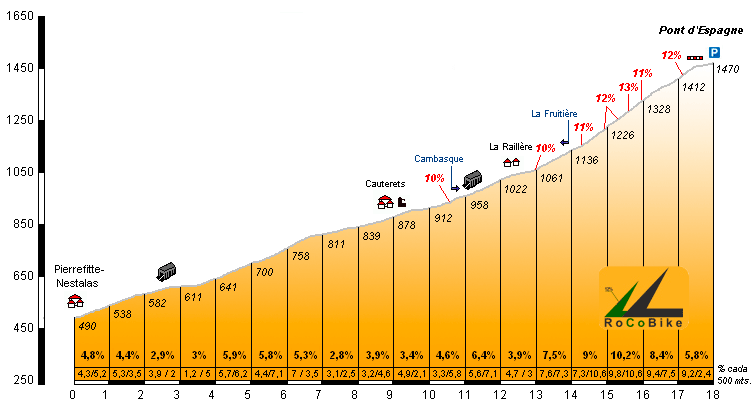 Localización (con mapa): La subida empieza en la localidad de Pierrefitte-Nestalas, concretamente en el cruce de la D921 (que nos lleva a Luz-St.Sauveur) con la D920. Tenemos que seguir esta carretera hasta la cima del puerto, pasando por la turĂstica localidad de Cauterets.