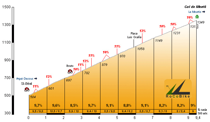 Localización (con mapa): La subida al Col de Menté empieza en la salida de St-Béat, concretamente en el cruce que nos lleva hacia Argut-Dessous, que nosotros dejaremos atrás siguiendo la D-44 dirección Boutx, que nos dejará a la cima de este mítico puerto.